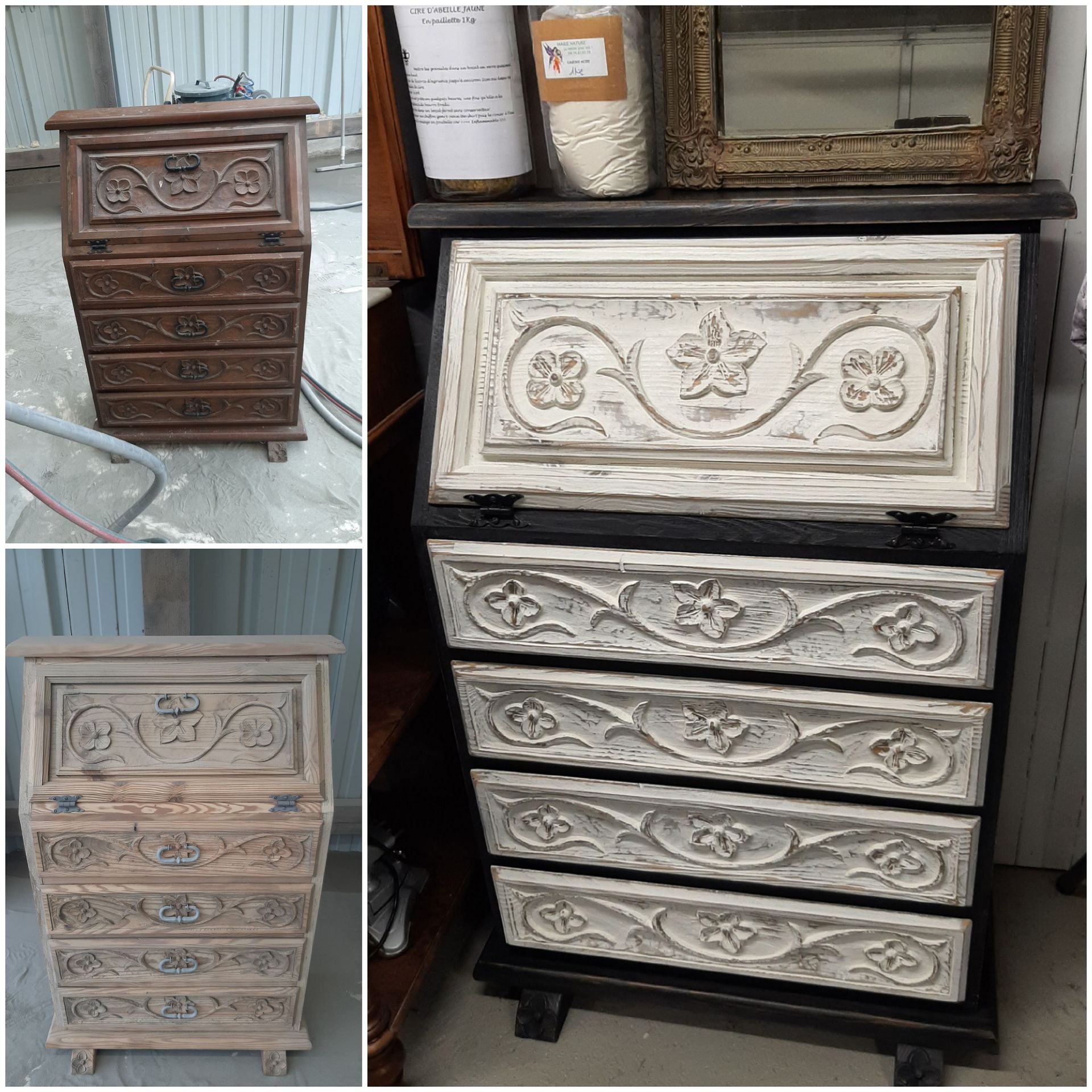 Une fois le décapage effectué, c’est là que la magie opère ! Chez L’Atelier Renaissance, nous retravaillons le meuble en corrigeant ses imperfections. Nous apportons plusieurs couches de peinture naturelle ou appliquons des patines pour conserver le caractère antique du meuble.